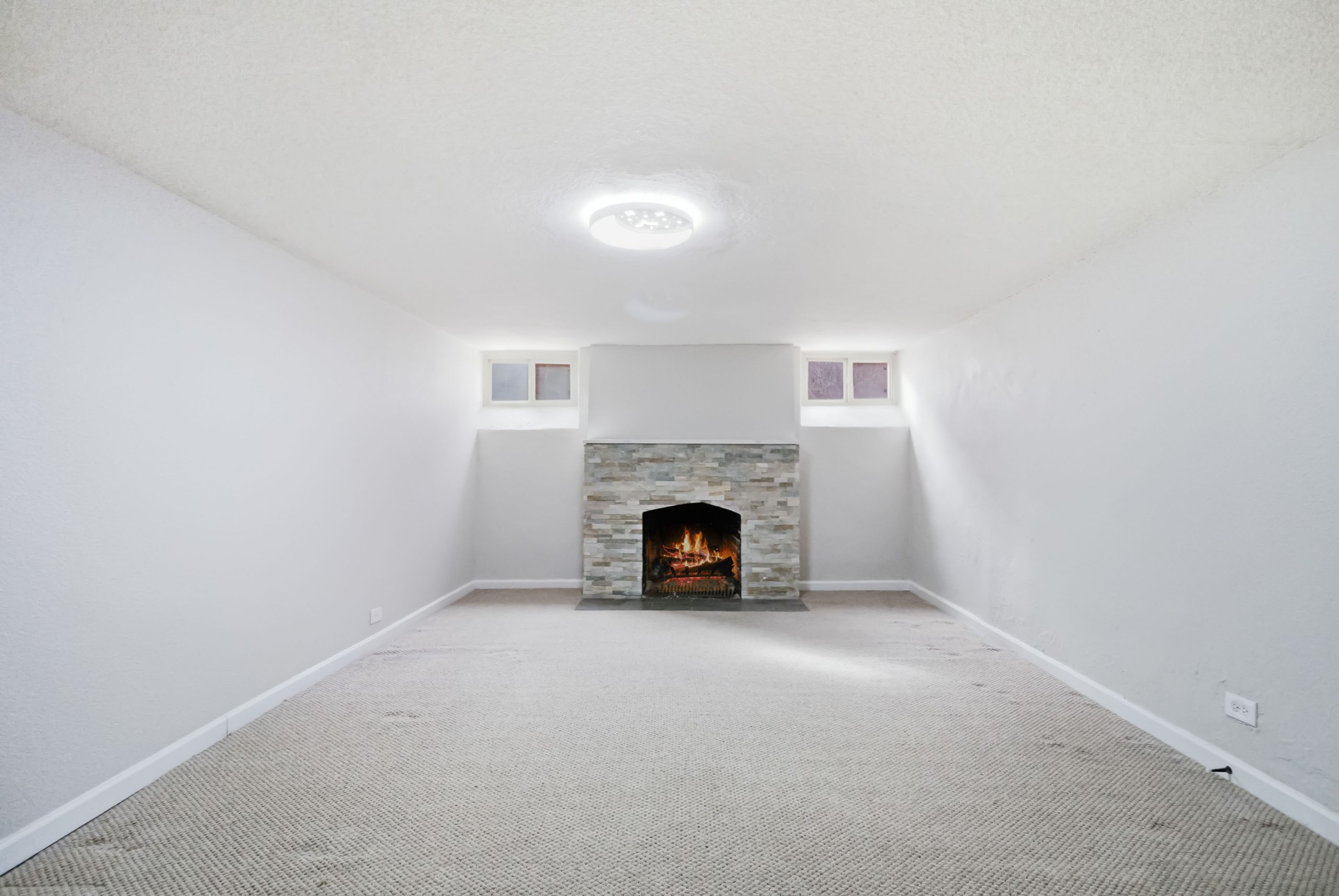 The fully finished basement adds a generous 1,241 sq ft of living space. A large family room centered on a wood-burning fireplace gives the lower level its own identity, and the bonus room works equally well as a gym, workshop, or dedicated storage. Two additional non-conforming bedrooms, a remodeled ¾ bath, and laundry with washer and dryer included round it out.
