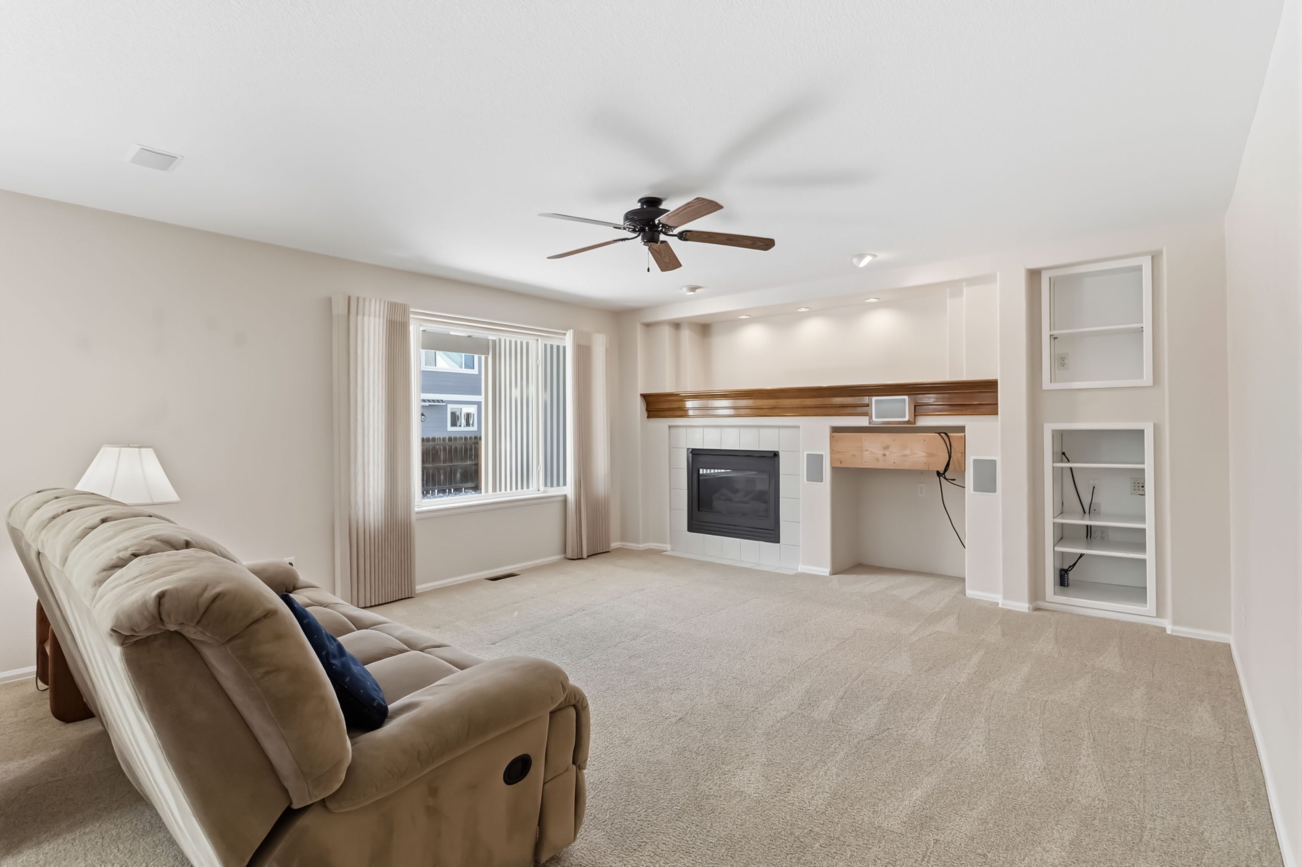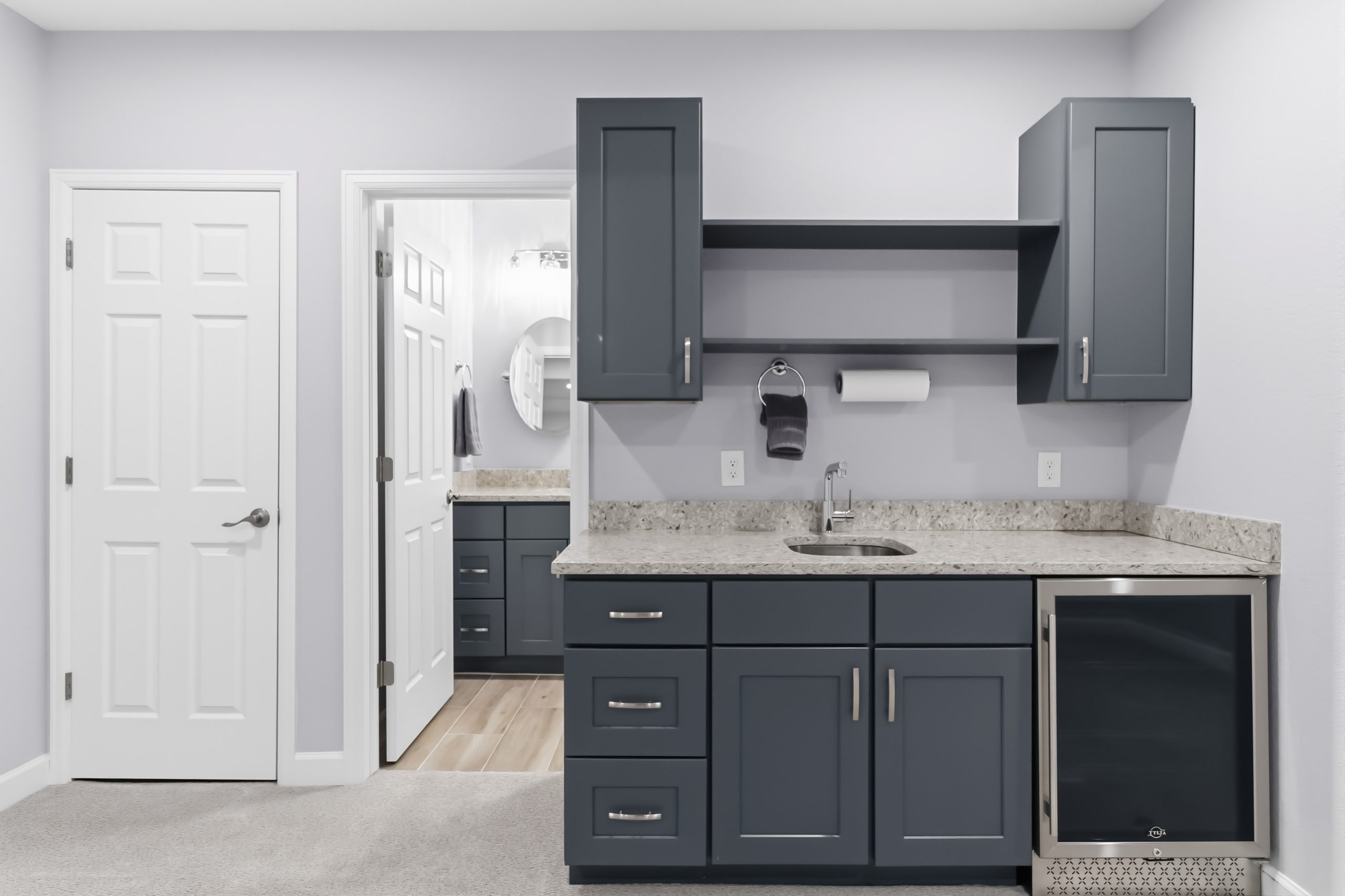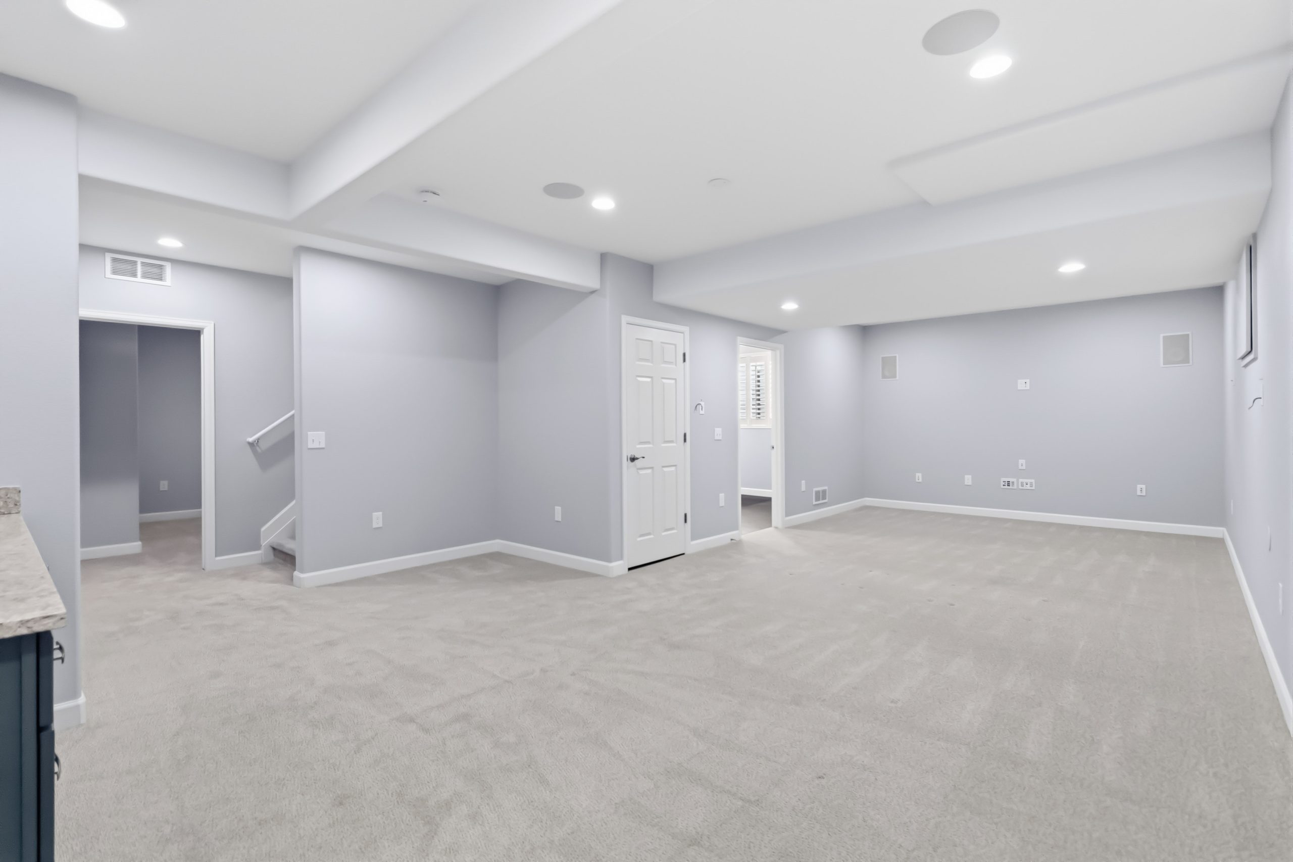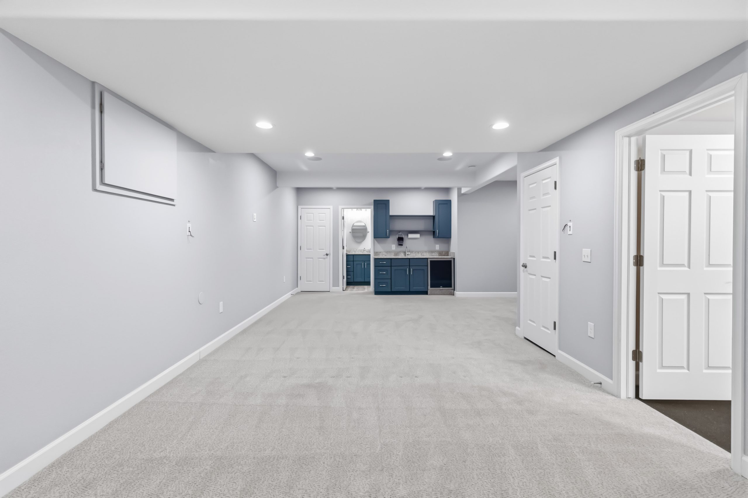 Then there’s the basement. Beautifully finished, it features a stunning wet bar with shaker cabinets, granite countertops, and a built-in beverage refrigerator. The main recreation room runs nearly 30 feet — ready for a home theater setup, a second living space, or both. There’s also a dedicated bedroom with egress window, a finished three-quarter bath, a gym area or storage room. It’s a full bonus floor, and it shows.