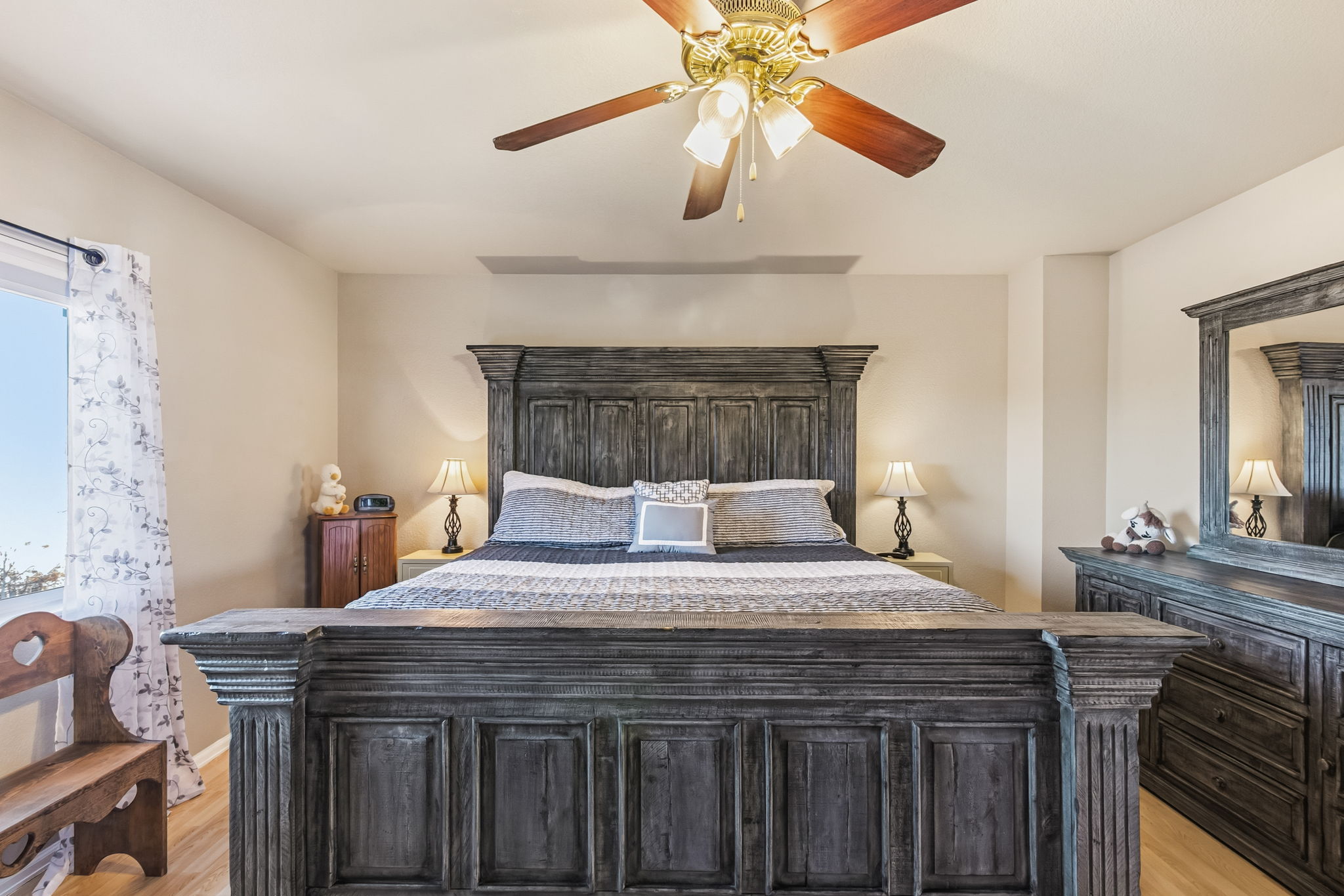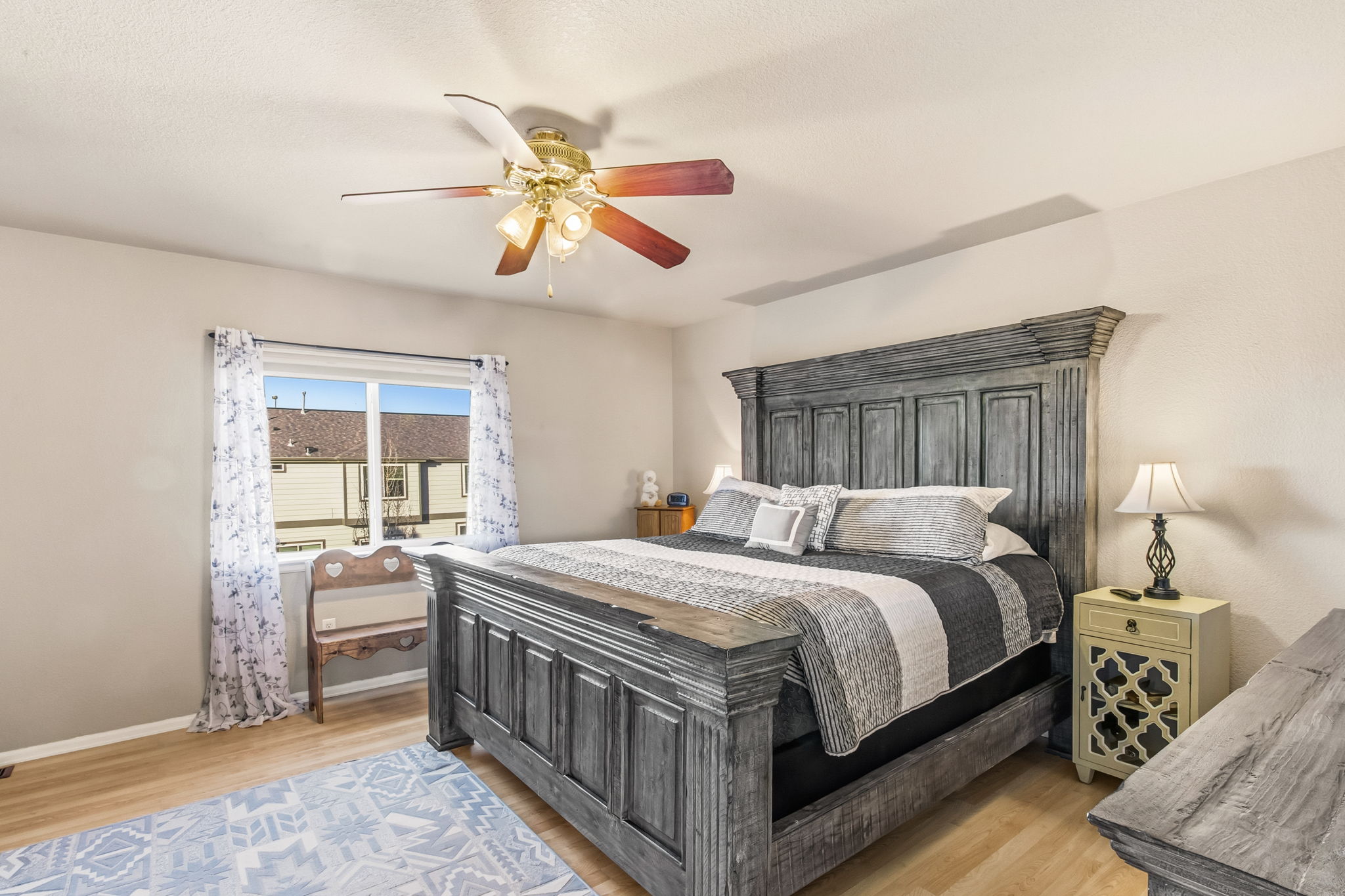 Retreat upstairs to your private sanctuary – a spacious primary suite complete with a walk-in closet and ensuite bath, providing the perfect escape at day’s end. Two additional bedrooms, each with ceiling fans and beautiful laminate flooring, offer flexibility for family, guests, or that home office you’ve been dreaming about.